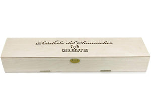 True to the original, the especially high-quality Champagne saber by Fox is manufactured in the known cutlery workshop in Maniago, Italy. The blade is made of rust-proof T5MOV stainless-steel.The sturdy yet valuable processing and decoration of the handle is a particularly complex design. This Champagne saber is certainly ready for any challenges at celebrations. It is delivered in an elegant wooden box with a decorative stand.