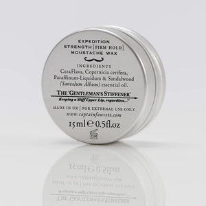 Featuring the time-honoured, delectable and most popular Sandalwood fragrance, this tin of specially formulated 'Firm Hold' Expedition Strength Moustache wax will ensure your perky tips stand proud throughout! Huzzah!