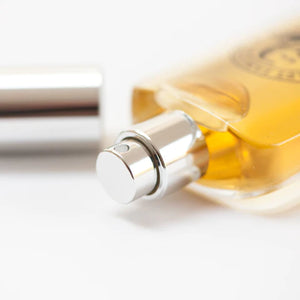 A robust glass flask style bottle with pump atomizer ensures a most precise delivery.