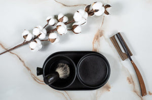 Shaving and aesthetics have always been connected. It is time to give your skincare the priority it deserves. With this set, you'll transform your shaving soap into nourishing lather and provide your bathroom with a handmade monument made of ceramic and wood. The tray, soap dish, lid and tray are all handmade for an aesthetic shaving experience without compromise. Since you love precision as much as we do, the milled out areas of wood and matte black glazed ceramic interlock with millimeter precision.