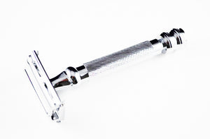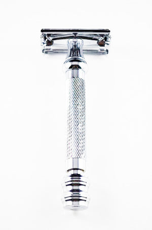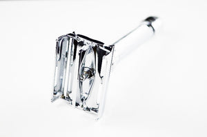 The Barber Pole Design is the neatest thing about this razor! The Parker 99 chrome plated safety razor has a "Twist to open butterfly" mechanism for easy blade replacement. When the handle of the razor is twisted, the top opens like a butterfly exposing the compartment where the blade is inserted.