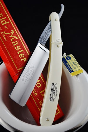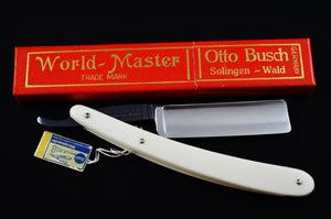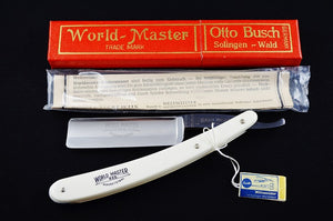 Long gone are the days when the Foreman would exclaim, "you are responsible for that razor you are making, don't cut corners, take your time!" Expertly stamped tangs, perfect grinds, and beautiful scales are now rare and hard to find in NEW condition. Presented here is the New Old Stock World Master Straight Razor by Otto Busch; German Craftsmanship at its absolute best, this incredible vintage razor is not only a true piece of historical art, but will instantly become the pinnacle of your shaving experience.
