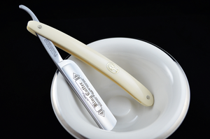 A Boker classic, now with a distinct new look featuring elegant white-handle scales. The King Cutter is a classic in the Boker lineup, and the perfect razor for everyday use. With the practical 5/8" blade it is easy to handle, and provides excellent shaving results. It's convenient nature ensures that it is also suitable for less experienced users. The non-stainless blade is made of the best Solingen razor steel, its traditional hollow grind allows you master daily use with ease. The handle is made of moisture-resistant synthetic material, and each razor features a historical blade etching, and an authentic Boker stamp. Made completely by hand in the Boker Manufactory in Solingen, Germany. Comes in traditional packaging with a certificate of authenticity.