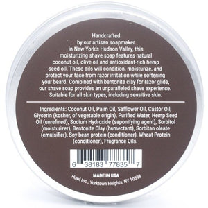 Our artisan Soap maker in New York’s Hudson Valley still crafts Taconic Shave Soaps in small batches. They create an incredible lather and provide a smooth and slick shaving experience. This moisturizing shave soap features natural coconut oil, olive oil and antioxidant-rich hemp seed oil. These oils will condition, moisturize and protect your face from razor irritation, while softening your beard. Combined with bentonite clay for razor glide, our shave soap provides an unparalleled shave experience. Suitable for all skin types, including sensitive skin.