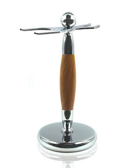 Wood & Chrome Safety Razor and Brush Stand