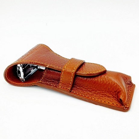 Parker Deluxe Leather Safety Razor Case Saddle Brown
