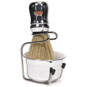 This brush in this set is a wet shaving favourite! This Omega No 49 Professional Brush in Chrome from Italian experts Omega features a lightweight, yet robust ABS thermoplastic handle filled with 100% Long Boar bristle to provide excellent lather ability with shaving creams and soaps. Branded with the Omega logo on the handle. A great looking brush with excellent performance. It also comes with a chrome plastic shaving bowl and a nice chrome stand which holds the shaving brush and bowl nicely together. An excellent starter shaving set to accompany a Safety Razor or a straight razor.