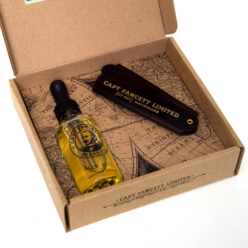 Captain Fawcett's Private Stock Beard Oil & Beard Comb Gift Set