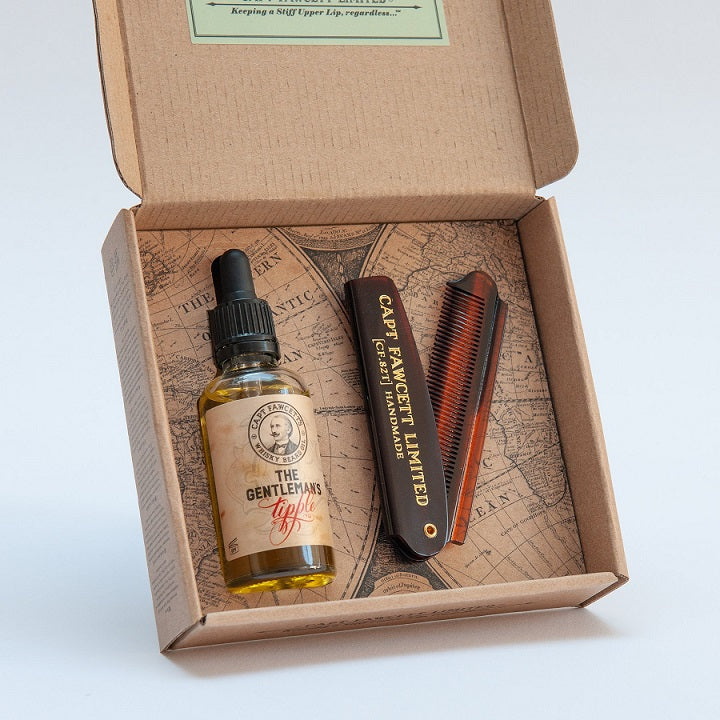Captain Fawcett's Whiskey Beard Oil & Beard Comb Gift Set