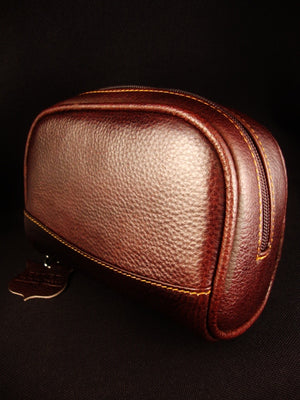 Our Genuine Leather Dopp Bag/Toiletry case is hand made by leather artisans to ensure premium quality. Manufactured with Cowhide Leather and YKK Zipper, it is both durable and functional. Small enough to easily fit in a carry-on bag, but large enough to hold most essentials. Great for travelers, also makes a great gift.