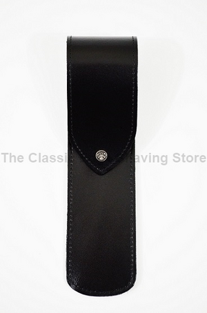 This is a beautiful Dovo Black Leather Sheath that will hold one straight razor giving a snug fit for your razor. This case is made of top grain leather featuring the famous Dovo trademark logo on the latch. This straight razor case will fit most razor sizes up to 6/8. The perfect case to protect your razor with a secure closure snap excellent for travel.