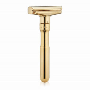 This Gold-Plated finish Futur Safety Razor allows you to re-adjust the angle of the blade as needed to maintain the optimum shave. By twisting the upper part of the handle, you can find the setting that gives you the closest, most comfortable shave. The traditional safety shape is easy to hold and handle.