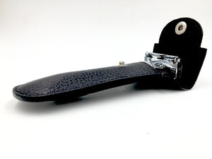 This high-quality case from Parker Safety Razor is made of genuine leather and is felt lined to protect your razor. The snap lid will protect your razor and the blade. It is designed for all Parker, Edwin Jagger, and Merkur safety razors. Why not protect your fingers from an unprotected razor with a blade in when fishing in your toiletry bag or medicine cabinet?
