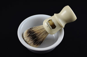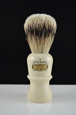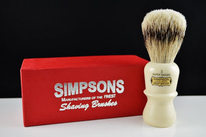 Simpsons shaving brushes are filled with 100% badger hair which is sorted, dressed, and sterilized by a London firm whose origins date back to the 16th Century. Badger hair has been used for more than two centuries to make the finest traditional English shaving brushes. This handmade Emperor 3 shaving brush is filled with Super Badger Hair that has extremely soft white tips and is housed in a lathe-turned imitation ivory handle. Super badger hair is flexible and have superior quality which will provide many years of faithful service as well as going a long way to helping you achieve the perfect shave. This brush will exfoliate the skin and lift and soften the beard prior to shaving.