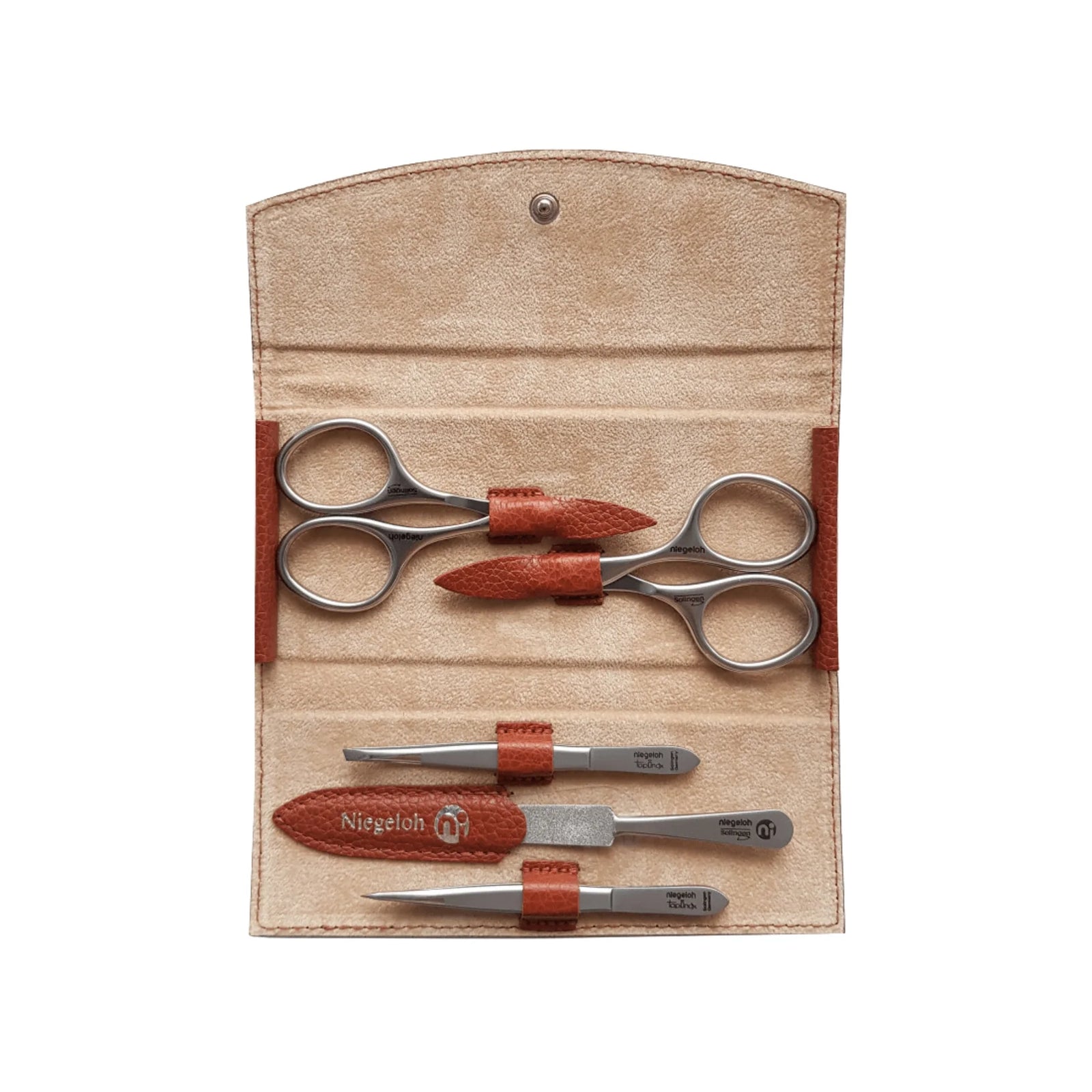 Niegeloh Manhattan Medium 5pc Manicure Set In High Quality Cognac Case