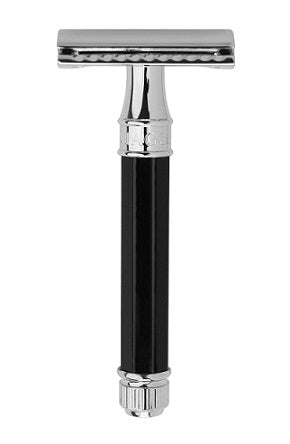 Edwin Jagger Chrome Octagonal Black Double Edge Safety Razor