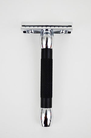 The Merkur 30C razor is one of the gentlemen in our array. Designed with black aluminum and bright chrome, this safety razor impresses with its elegant appearance. The long handle makes it comfortable while the weight gives you the control to contour your beard effortlessly. With its closed comb and large blade gap, it is gentle to shave and easy to use.