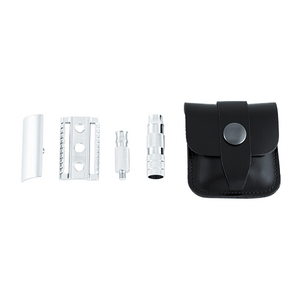 The Merkur 933 model is an extremely compact travel shaver with a detachable handle. Packed in a black leather case, it’s essential for those connoisseurs who don’t want to miss the luxury of a proper wet shave even when travelling. A MERKUR SUPER blade is also included so that you are immediately well prepared for your next trip!