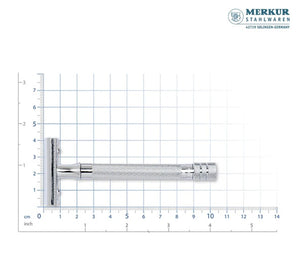• 1 Merkur 23001 safety razor with a brass handle and die-casted zinc razor head