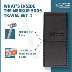Merkur 5005 Travel Shaving Set with Merkur 23C, Leather Case and 10 Blades