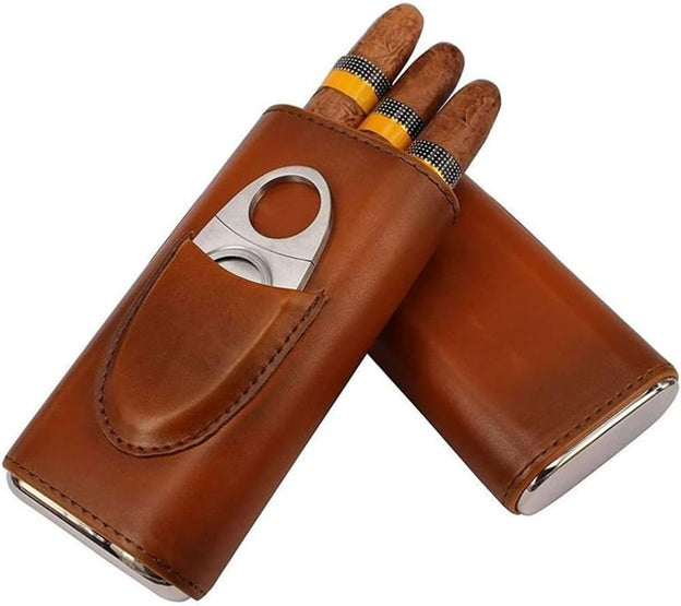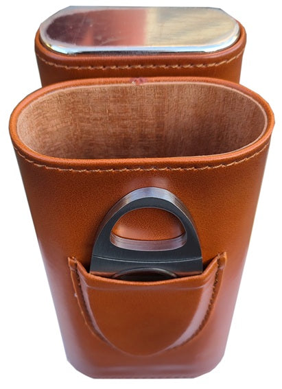 The Classic Edge Shaving Store Brown Metal Top Cigar Case with Cutter