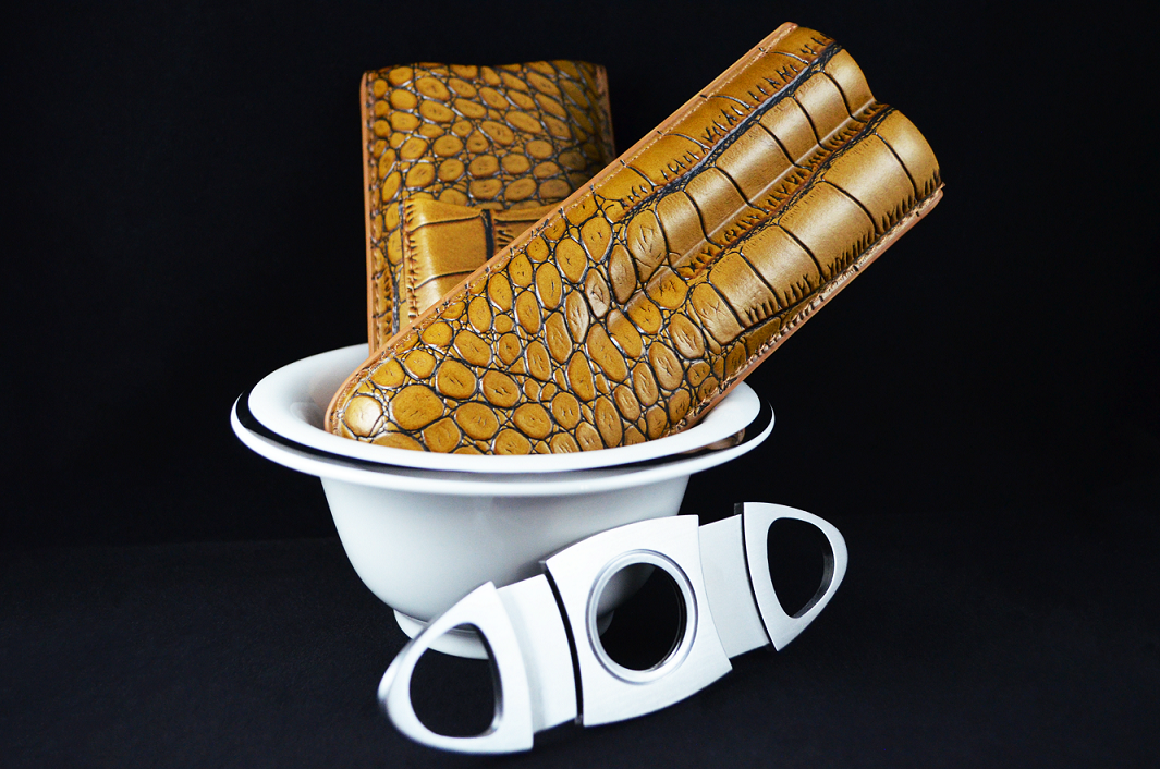 The Classic Edge Shaving Store Sikarlan Alligator Cigar Case with Cutter