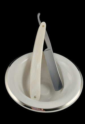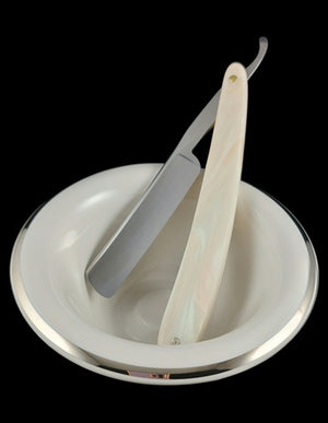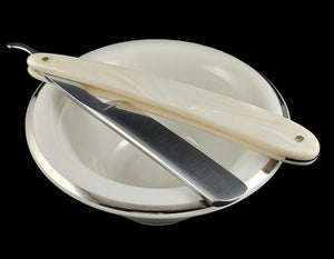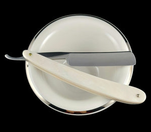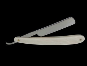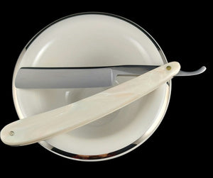 This Wapiencia Faux MOP Straight Razor NOS is a treasure recently discovered in a Russian bunker, forgotten for over a decade. The razors were once packaged in wax paper with the soldiers' names and ranks, but only a few remain. These unique razors, including the one offered here, were available in five different styles, with some designed for medical use. Certain models, marked with SFK, were sold to the public in a plastic coffin box. Despite their high-quality stainless steel scales, these razors were heavy and off-balanced, making for an awkward shaving experience. However, we have meticulously restored each razor to almost perfect condition, and replaced the scales with brand new scales. There are still signs of minor blemishes, but very difficult to see with the naked eye. To ensure complete transparency, we provide individual photos of each razor.   Originating from Poland, this razor boasts a high carbon steel blade and faux mother of pearl scales (made of plastic).  Please request in the Note for vendor when checking out, if you would like the razor honed to "Shave Ready". There is no charge, as it is a gift from us at The Classic Edge!  You also get one complimentary honing that can be used at a later date, when it's time to refresh your edge.  Please allow 2 - 3 days for us to hone and sanitize your razor prior to shipping.  These extra's are what sperate our store from any other online shaving retailer.  Phil is more than happy to answer any razor related questions, and you can reach us at 416-574-1592.  Thank you so much for visiting our online store and supporting small businesses.
