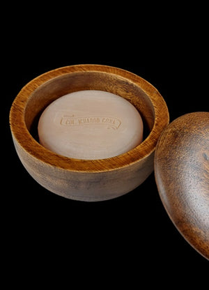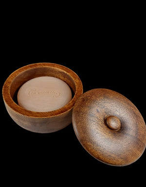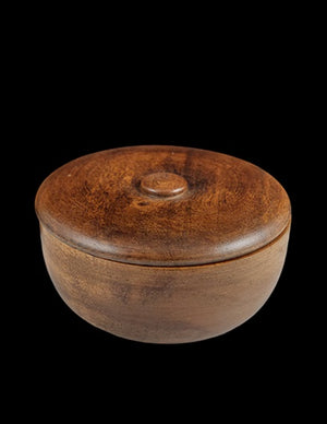 Style meets function in this beautifully crafted covered shave bowl. The natural grain of the wood is enhanced by the rich finish. The lid keeps your soap out of sight until you are ready to use it.