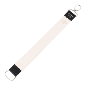 For all strops from Dovo exclusively use vegetable-tanned cow leather. This technique, also known as "old tanning", prepares the leather for optimal use as a strop. We treat our leather this way to ensure that it has no scarring or unevenness making it perfectly suited for stropping straight razors with its supple surface.