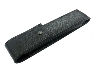 This is a beautiful Dovo Black Leather Sheath that will hold one straight razor giving a snug fit for your razor. This case is made of top grain leather featuring the famous Dovo trademark logo on the latch. This straight razor case will fit most razor sizes up to 6/8. The perfect case to protect your razor with a secure closure snap excellent for travel.
