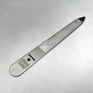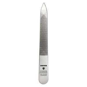 The DOVO triple-cut nail file is a true sustainability champion. It is made of stainless steel and possesses a wear-resistant surface, which gives it the longest functional lifetime amongst all nail files. The intersecting notching, which is manufactured by using a traditional notching process, characterizes the iconic look of this file. Its small size makes the DOVO triple-cut nail file a space-efficient, indestructible every-day companion and the perfect travel accessory.