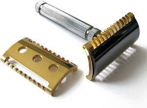 The PICCOLO razor, definitely an icon for many fans, comes in a new version Black & Gold with the handle and the top of the head in the color metallic black while the two combs supplied have the gold finish. The end result is really elegant and precious.