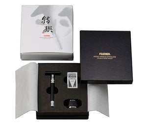 SOPHISTICATED AND STURDY – STEEL AND WOOD! You will love the luxurious designer combination of steel and wood for your new Feather Wood Handle Stainless Double Edge Razor. It comes with 5 Feather Hi-Stainless Double Edge Blades and accompanying 5.8 oz Stainless Steel and Wood Stand. This is our most sophisticated double edge razor that gives a close, smooth, and controlled shave with each luxurious stroke. It’s all due to modern technology from Japan that always offers the finest craftsmanship available.
