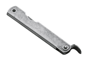 The folded handle of the Higonokami Kinzoku Damascus is made from stainless steel and has a subtle lanyard hole. The slim blade consists of high-quality Damascus.