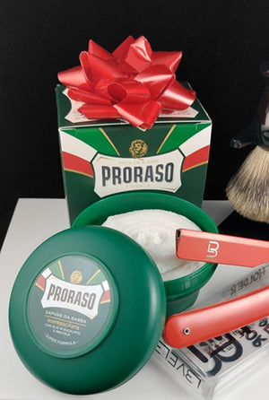 For the soap, we have included the Proraso Shaving Soap. Made in Italy, this premium shaving cream lathers easily and prepares your face for a close yet soothing and comfortable shave, you won't be disappointed with this high quality soap. Not only does it lather like a champ, but it smells absolutely delicious! Comes in 3 different scents: Sandalwood, Eucalyptus, and Green Tea!