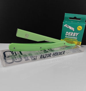 Level 3 Barber Razor with 100 Derby Single Edge Blades, Green