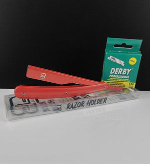 It also comes with the Derby Professional Single Edge Blades, Made of Swedish steel that are coated with Chromium, Ceramic, Platinum & Tungsten for an ultra-premium smooth shave. These are the top-of-the-line for single edge blades. Each package comes with 100 individually wax paper-wrapped, pre-cut blades - no more snapping DE blades in half!