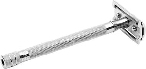• Bright Chrome Finish: Adorned with a bright chrome-plated finish, this razor exudes sophistication and refinement. The chrome surface adds a touch of elegance to your grooming routine, while also providing durability and corrosion resistance.