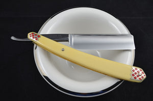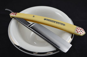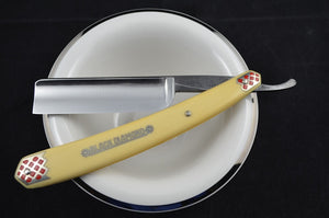 Give your grooming routine a touch of vintage luxury with the NOS Black Diamond 6/8 Straight Razor. Crafted with original 1930s German-made Bakelite scales and an Extra Full Hollow Ground blade, this razor offers expert craftsmanship and quality materials for an exceptional shaving experience. Enjoy a precise and smooth shave every time, without compromising on style or functionality.  Made for the Barber Industry this razor comes packed in Wax Paper instead of a Coffin Box.