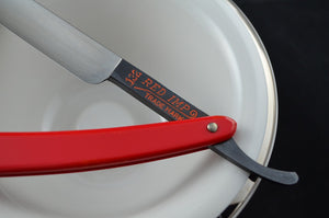 Crafted by the esteemed Case & Sons in the United States, the NOS RED IMP #132 Straight Razor is a highly coveted collectors item due to its rare New Old Stock condition. Produced for wholesale distribution to Barber Supply businesses, these razors were carefully wrapped in wax paper instead of the traditional coffin boxes. Offering a Quarter Hollow Ground with a stunning satin finish and untouched original factory edge, this exceptional razor is a true gem of the 1920's.