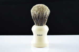 Simpsons shaving brushes are filled with 100% badger hair which is sorted, dressed, and sterilized by a London firm whose origins date back to the 16th Century. Badger hair has been used for more than two centuries to make the finest traditional English shaving brushes. This handmade Eagle G1 shaving brush is filled with Pure Badger Hair that has a soft darker creamy tip and is housed in a lathe-turned imitation ivory handle. Best badger hair is flexible and have superior quality which will provide many years of faithful service as well as going a long way to helping you achieve the perfect shave. This brush will exfoliate the skin and lift and soften the beard prior to shaving.