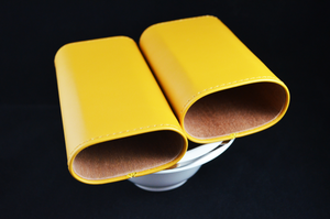 This especially beautiful travel cigar case features a luxurious Spanish cedar lining, a yellow-finished premium leather wrapping on the outside, and high-quality stainless steel plates on the top and bottom of the case; ensuring your cigars are not only protected, but are done so with class and style. Each case holds up to three of your favourite cigars; its ingenious telescopic design allowing you to adjust the length of your case to perfectly fit any cigar.