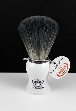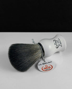 Omega Black Hi-Brush Fiber Shaving Brush, White Handle