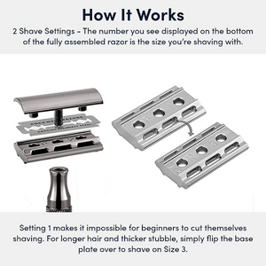 The Rockwell 2C includes Rockwell sizes 1 and 3. These are our most popular settings, making the Rockwell 2C a great beginner classic razor. The adjustable sizes that come with the Rockwell 2C ensure anyone can perfect a close, comfortable shave. This high-end razor combines revolutionary precision-engineered blade angles and patented adjustability to deliver an unparalleled shaving experience. When coupled with Rockwell's pure Swedish Stainless-Steel Blades, the 2C provides the ultimate, close shave at a value that will put you off cartridge razors for good. Cast from premium chromed zinc alloys, the Rockwell 2C’s flawless finish is nearly as impressive as the incredible shave it provides.