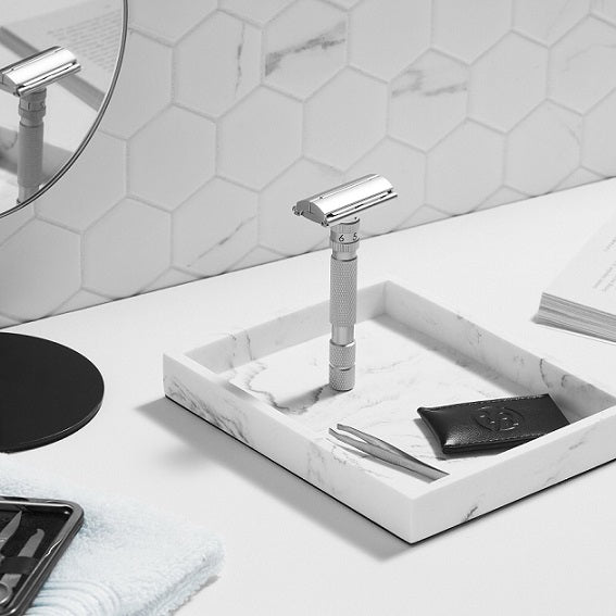 PureBadger Collection Double Edge Safety Razor & Brush Stand, Grey