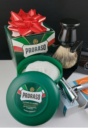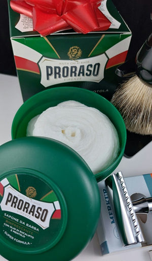 For the soap, we have included the Proraso Shaving Soap.Made in Italy, this premium shaving cream lathers easily and prepares your face for a close yet soothing and comfortable shave, you won't be disappointed with this high quality soap. Not only does it lather like a champ, but it smells absolutely delicious! Comes in 3 different scents: Sandalwood, Eucalyptus, and Green Tea!