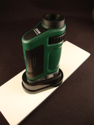 For those of you that are learning how to hone your own razors it is ultra important to be able to see your work. The only way to truly see what your bevel looks like is to use an aid, a loupe of 10x or higher is a good tool. A pocket microscope shows much more detail, especially for the money. I have been using this model for years for a couple of reasons, the LED is much better than a standard light and the battery is still the same when I bought my first unit 2 years ago. The fact that it fits in your hand is the best part, and since your other hand is free to move the blade around you can't loose.