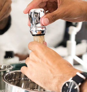 To use with Shaving Cream in a Tube: Dampen brush with warm water and squeeze approximately a dime sized amount of Shaving Cream into the center of the brush. In circular motions, start building the lather right on the face. After use, rinse, squeeze out excess water, and store with the bristles facing downward.