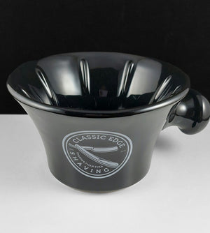 What is different between The Classic Edge Ultra Apothecary Mug and any other? Everything! Exclusive and only available at The Classic Edge, we had this Apothecary Mug Designed to meet all our high Quality Standards. It is Bigger, Better and produces a lather faster. The standard Apothecary sold anywhere has a mouth of 4 1/2" Outside Diameter. The Ultra Apothecary measures at 5 1/4". Why does it produce a faster lather than any other mug? When designed, we included special Ribs inside to act as friction ribs. So every time the brush runs over these ribs, Oxygen is introduced to the lather giving you a thicker foam at a much faster rate. Another improvement is the height. As the standard Apothecary is 3 1/4" high, we made ours 3" High along with the extra wide mouth which keeps your knuckles from banging into the sides and you can use the largest Brush in the industry and have room to spare. The standard Apothecary Diameter at the bottom is 2 1/4" inside diameter which just fits a small cake soap. The Ultra Apothecary bottom dimension is 2 3/4" inside diameter which fits most sizes of cake soaps. At the bottom are also more pronounced ribs that are raised higher to match the new sidewall ribs. Also heavier, this Apothecary Mug is a pleasure to work with, and when you hold it, you feel the quality of this Hand Made piece of Art. Made by an Artisan named Nathan Smallman in the U.K, we knew this product was worth the extra money than a copy mass produced in China. So if you believe in having the best, this is without question the best Apothecary available today. Thanks so much for visiting our website and have a wonderful day!